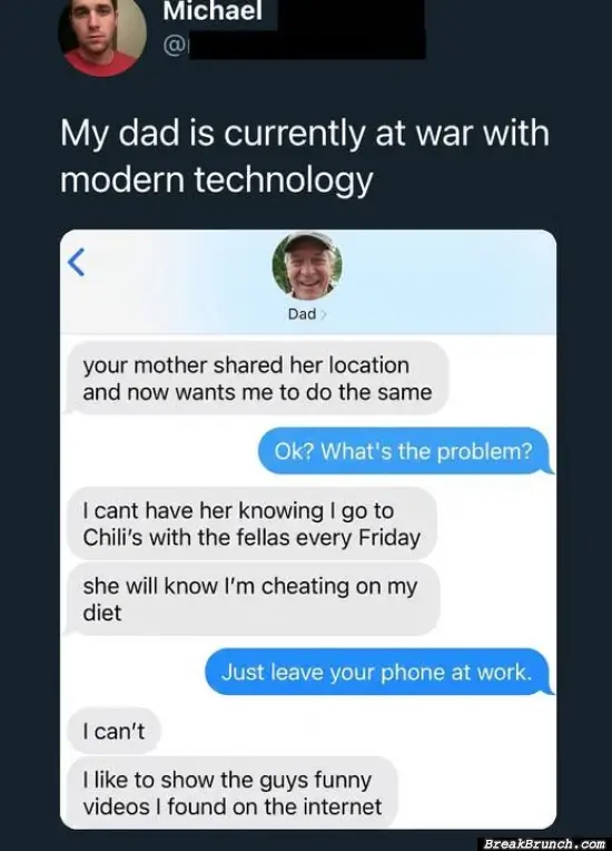 Dad is at work with modern technology