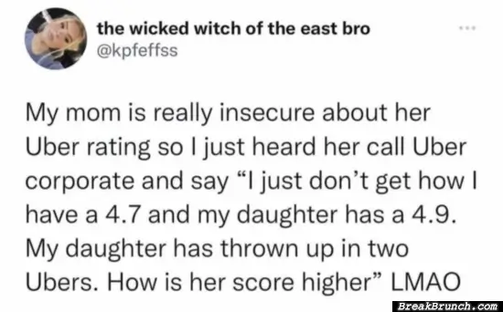 My mom and her Uber rating