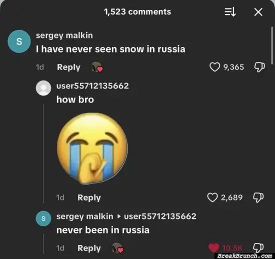 I never seen snow in Russia