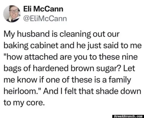 When husband is cleaning baking cabinet