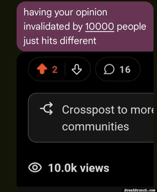 When 10k people invalidated your opinion online View more from: Funny Reddit View more from: Funny Picture